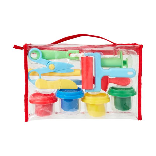 Product DetailsSuitable for ages: 3+ yearsNet weight: 56g (Each dough tub)Includes 1 x storage bag, 4 x dough tubs, 1 x scissors and 7 x dough tools13 piecesDimensions/Size:26cm (L) x 17cm (H) x 7cm (W)Features4 colours of doughTransparent, zip closure and top carry handle storage bag