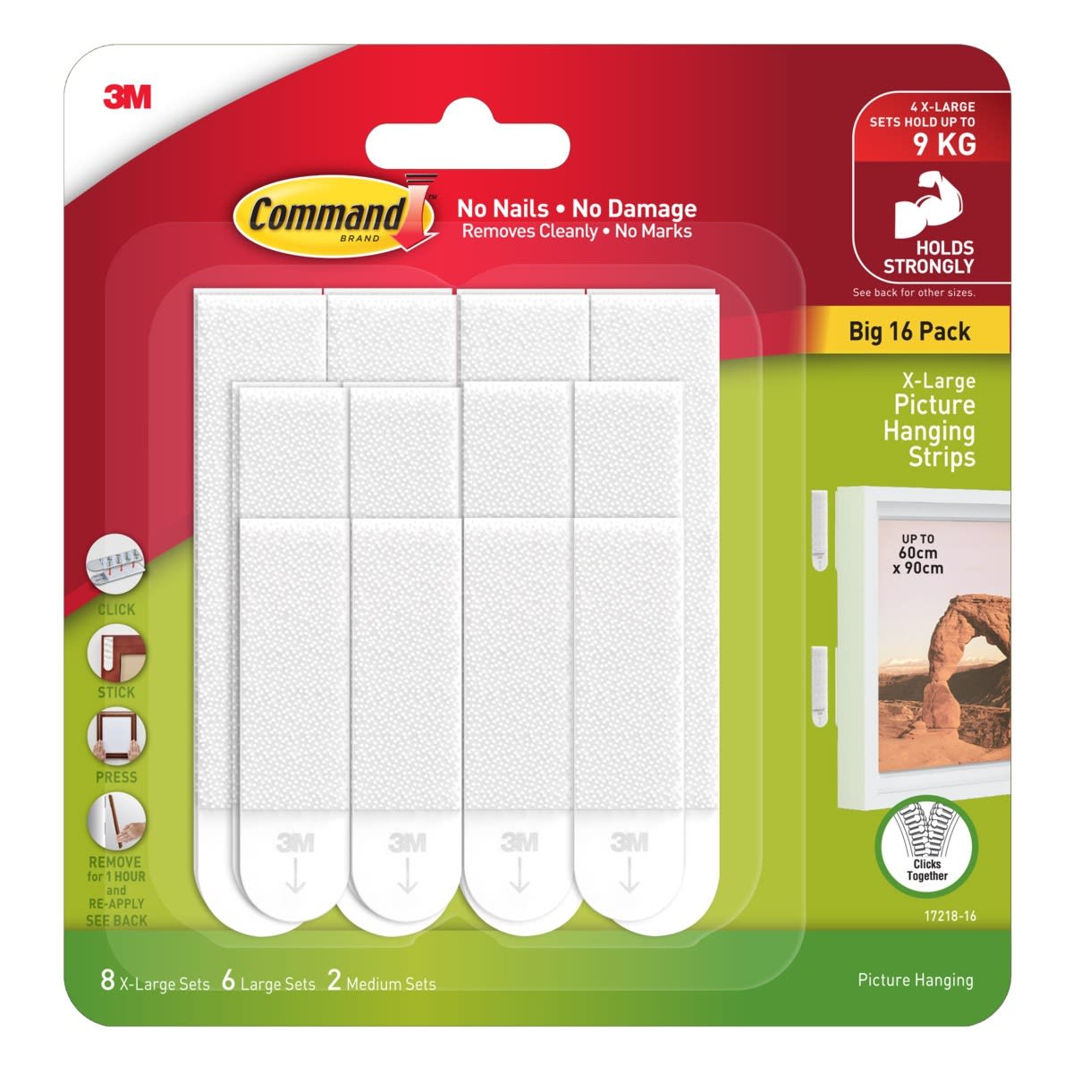 Whatever your style, Command Picture Hanging Strips make it easy to transform your space and make it your own. Forget about nails, screws and tacks, Command Picture Hanging Strips are fast and easy to hang - no more holes to worry about! Strips 'snap' and lock together, providing a secure stronghold. Using the revolutionary Command Adhesive, they hold strongly on a variety of surfaces, including painted walls, wood, tile and more. Yet, removes cleanly - no holes, marks, sticky residue or stains.