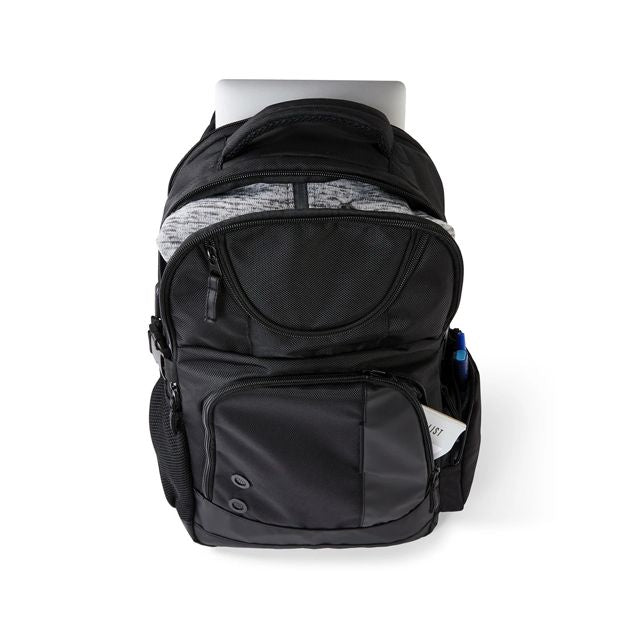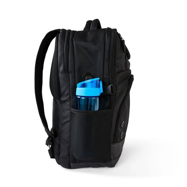 Product DetailsCapacity: 20 litresDimensions/Size: 48cm (H) x 34cm (W) x 18cm (D) Colour: BlackFeaturesMulti compartmentsIncludes USB port for charging on the go: USB-C and USB-APadded shoulder strapsCarry handleZip top compartmentZip front/side pockets and 1 side mesh pocket
