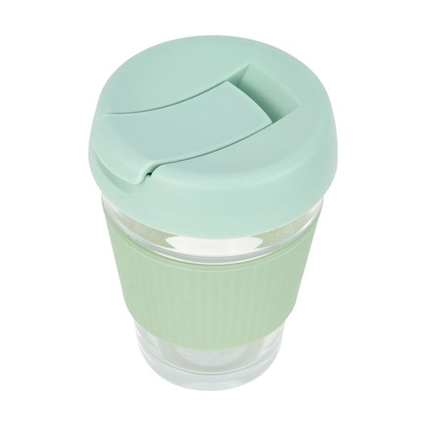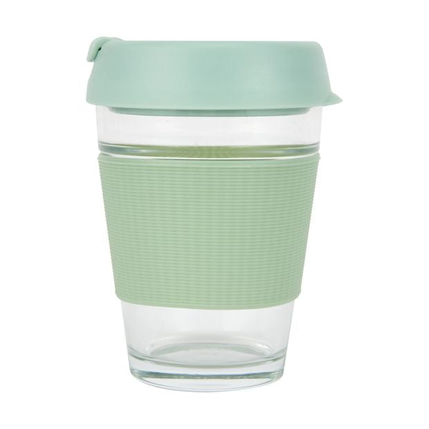 Product Details Capacity: 350ml Dimensions/Size: 9.1cm (L) x 12.3cm (H) x 9.3cm (W) Colour: Sage (Green)Features Reusable BPA free Leak proof Tempered glass used for hot drinks Removable lid Dishwasher and microwave safe