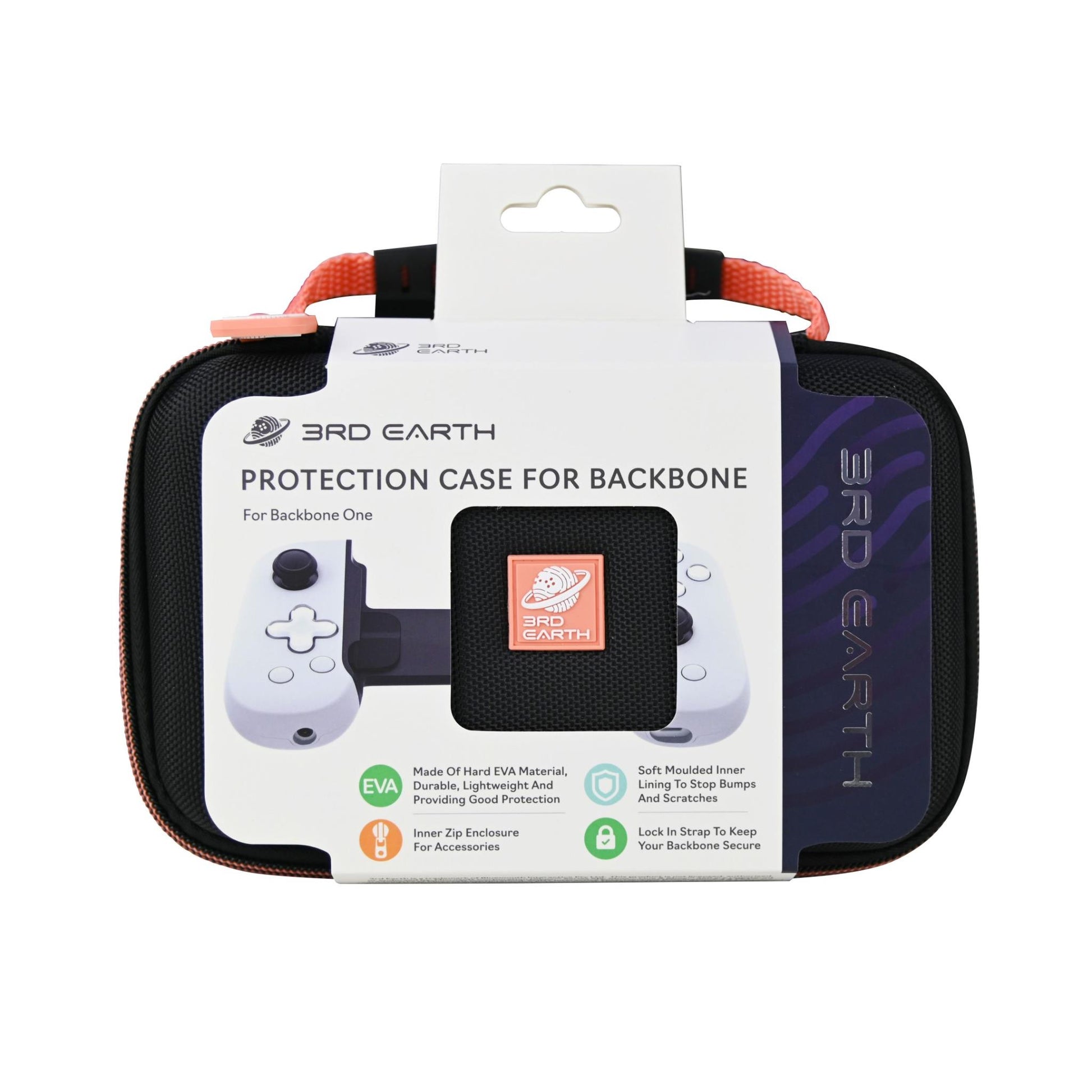 Great gaming equipment needs top notch protection! Our 3rd Earth EVA case is designed to be hard on the outside and snugly fit your Backbone controller inside, so you can go anywhere, knowing it is safe and sound. With enclosed pockets for charging cables, headphones and other accessories, this case is a must. Key FeaturesMade of hard EVA material, which has the perfect rigidity and hardness to provide your device with good protection.Featuring an inner zip closure for secure stowage of your console.Soft molded inner lining to stop bumps and scratchesLock in strap to keep your Backbone One secure