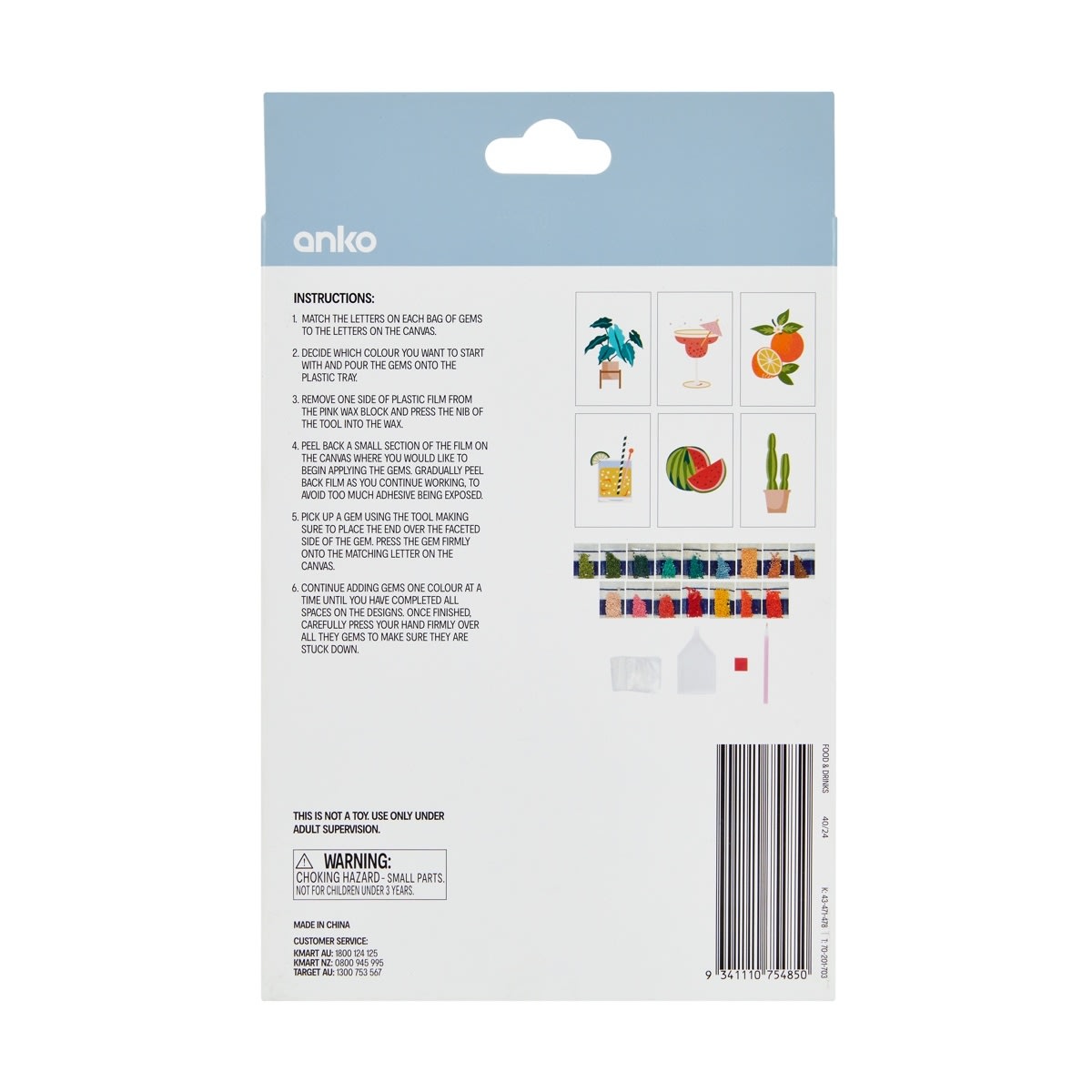 Includes 6 x canvas print design, 16 x coloured gems packs and tool set