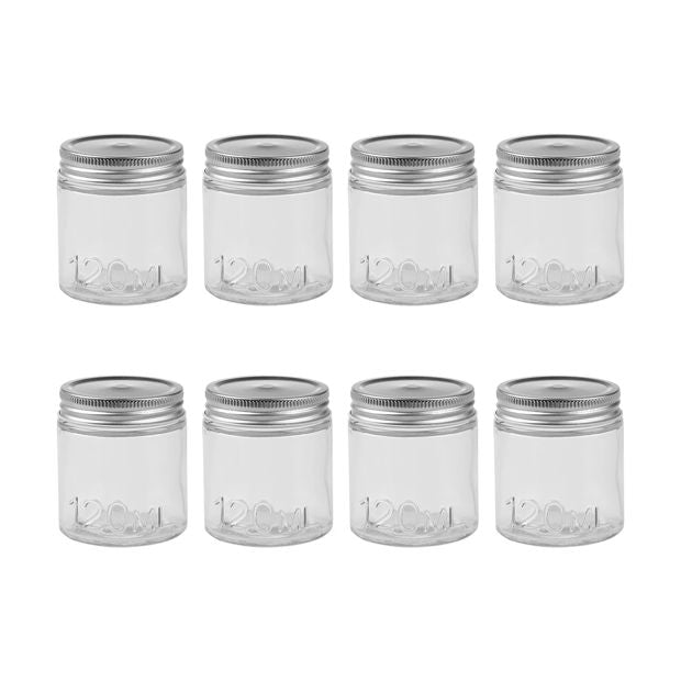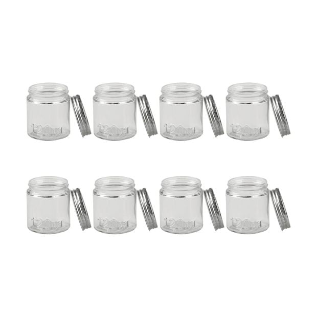 Product Details8 packCapacity: 120ml (each)Dimensions/Size: 6.7cm (H) x 5.9cm (Dia.)Material: Soda lime glass (body) and tin (lid)Colour: ClearFeaturesCompatible with 56mm jar lidsFor everyday food preserving and storage solutionsHermetically sealing lid for airtight preserving with seal made of a rubber material which prolongs freshness of foodAir and water tightDishwasher safe (body)Additional InformationFor domestic use only.Care instructions: Clean according to given instructions