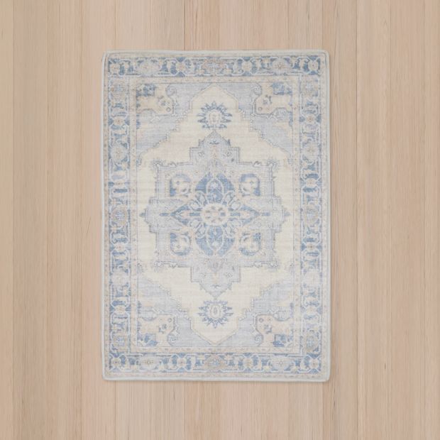 Product Details Dimensions/Size: 90cm (L) x 60cm (W) Colour: Blue Features Printed Rectangle shape Machine washable Non-slip backing Easy to clean and vacuum