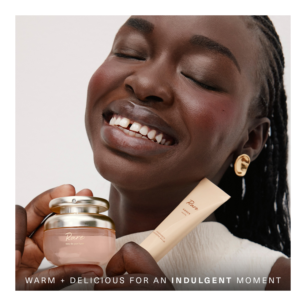 To pair with Rare Eau de Parfum, we recommend applying the balm first, then spritzing the eau de parfum on top. The Rare Fragrance Layering Balm acts as a primer for your perfume, boosting its intensity.