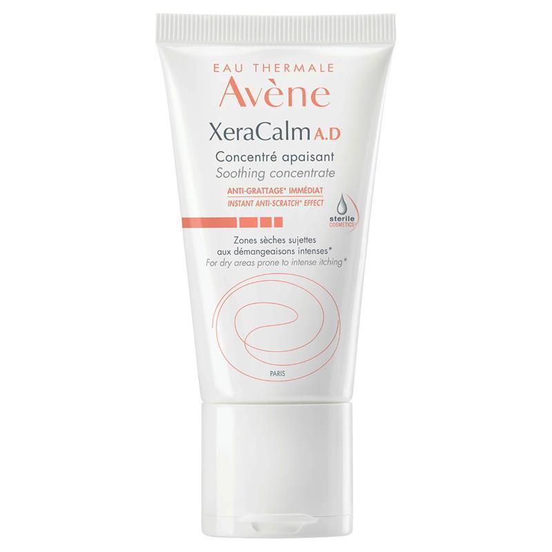 General Information Avène XeraCalm A.D Soothing Concentrate is a specific care cream that targets intense and localised itching sensations due to severe skin dryness*. *Upper layers of the epidermis - In-use tolerance and efficacy study under dermatological and pediatrician control in subjects with atopic dermatitis and/or localized dry skin, associated with pruritus on 82 subjects application 4 times a day for 22 days. Avène XeraCalm A.D Soothing Concentrate is a specific care cream that targets intense and localised itching sensations due to severe skin dryness* in very dry and eczema-prone skin. Designed for use alongside your very dry skincare routine, it immediately soothes discomfort caused by skin dryness*. *Upper layers of the epidermis - In-use tolerance and efficacy study under dermatological and pediatrician control in subjects with atopic dermatitis and/or localized dry skin, associated with pruritus on 82 subjects application 4 times a day for 22 days. The confidence of healthy skin Suitable For: From 3 months Product Claims: Avène XeraCalm A.D Soothing Concentrate is a specific care cream that targets intense and localised itching sensations due to severe skin dryness* in very dry and eczema-prone skin. Designed for use alongside your very dry skincare routine, it immediately soothes discomfort caused by skin dryness*. *Upper layers of the epidermis - In-use tolerance and efficacy study under dermatological and pediatrician control in subjects with atopic dermatitis and/or localized dry skin, associated with pruritus on 82 subjects application 4 times a day for 22 days. Size: 50ml KEY FEATURES • Immediately reduces discomfort caused by skin dryness and soothes itching sensations after the first application1 • Immediately reduces itching by 68%*. *Upper layers of the epidermis - In-use tolerance and efficacy study under dermatological and pediatrician control in subjects with atopic dermatitis and/or localized dry skin, associated with pruritus on 82 subjects application 4 times a day for 22 days. • Skin is 75% more hydrated after 1 hour**. **Evaluation of the moisturising effect and the lipid substantivity of product compared to two commercial references and an untreated control area after single application: hydration kinetics over 24 hours and lipid substantivity kinetics over 6 hours on 21 subjects.
