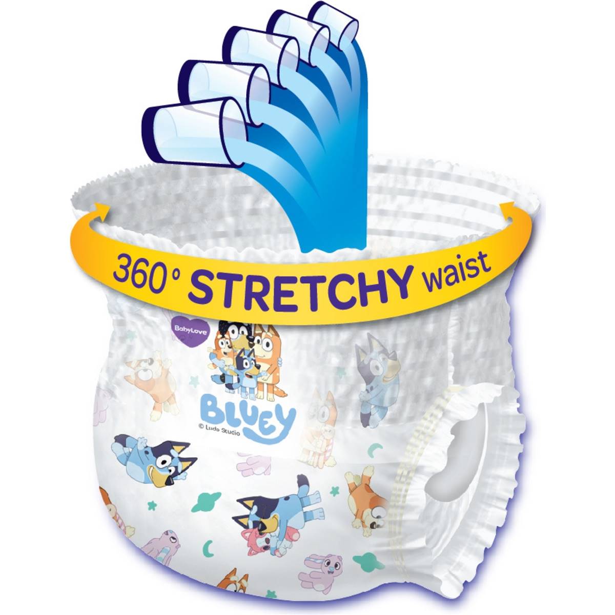Designed to keep your little ones and their beds dry throughout the night, these BabyLove overnight pants have maximum absorbency, giving your child all night confidence.Comes with a stretchy 360 degrees waistband that is an easy pull up during changing, these overnight pants provide a soft and secure fit for your child, ensuring comfort while they sleepMaximum absorbency gives your child advanced leakage protection for all night confidence.The soft and stretchy 360 degree waist band allows your child to sleep in their most comfortable position.Super Absorbent Core absorbs liquid quickly, plus soft & stretchy leg guards for protection against leaks.With an ultra-comfortable fit and advanced leakage protection, your little one will wake up feeling refreshed after a good night’s sleep.With fun Bluey prints.