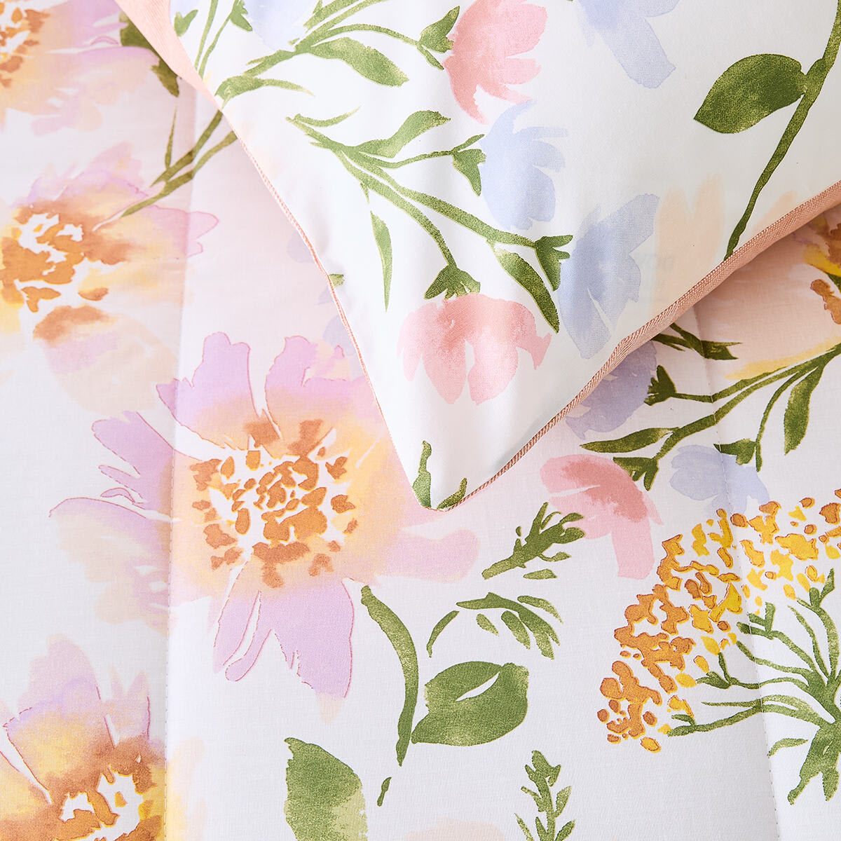 Transform your bedroom with the Belle Cotton Rich Reversible Comforter Set, featuring a floral print that adds a refreshing touch to your room.