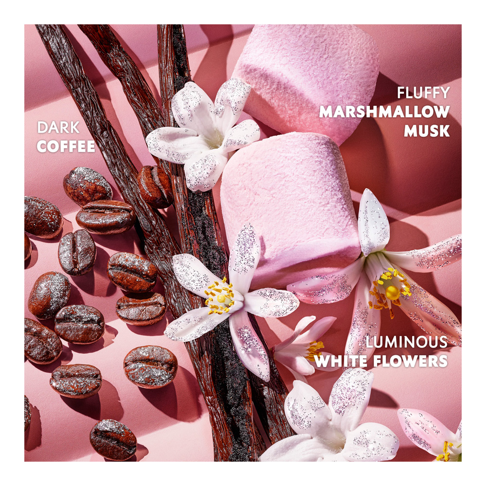 The coffee floral signature of Black Opium now dives in a musky sexy scent. Like an armour of sweetness, the marshmallow musk accord finds itself between false innocence and ultra sexiness, awakening a new femininity which transcends this sparkling olfaction. This fragrance does not spray or contain glitter.
