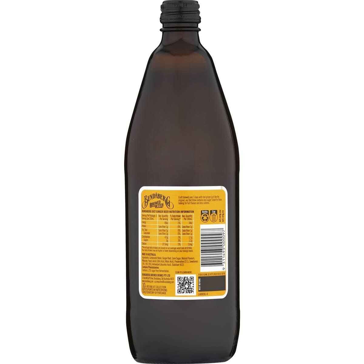Craft brewed over 3 days just like the original, Bundaberg Diet Ginger Beer contains less sugar and almost twice the ginger! Great for those looking for full flavour with less calories. Hold a bottle up to the light and you'll see real ginger pieces suspended throughout. Be sure to invert the bottle before opening to enjoy the full refreshing flavour. Real Aussie GingerBrewed over 3 daysAustralian family ownedBest enjoyed cold