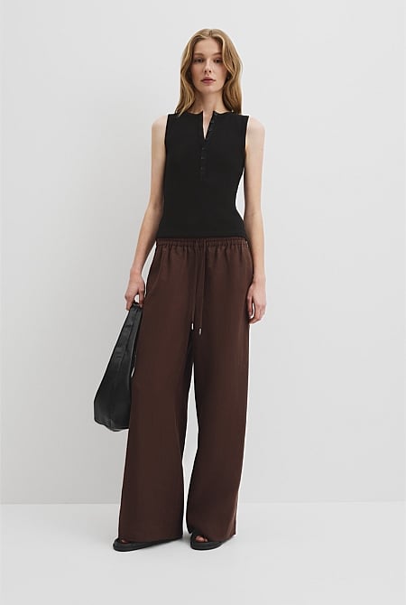 An everyday layer made of soft cotton with a hint of stretch for comfort. This sleeveless style features a fine rib finish and centre front buttons.