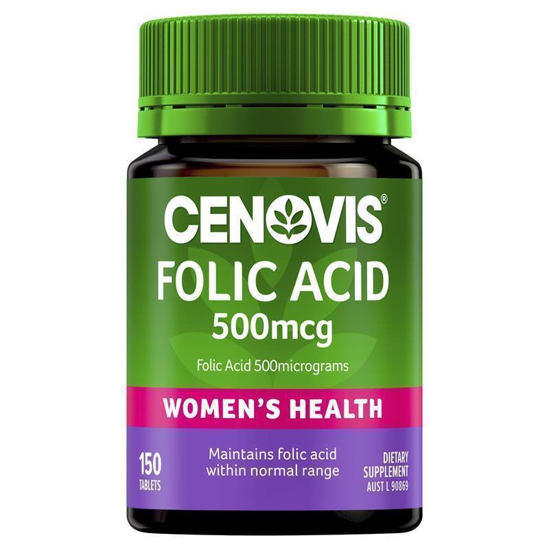 General Information Cenovis® Folic Acid 500mcg helps to prevent neural tube defects such as spina bifida and anencephaly when trying to conceive and during the first trimester of pregnancy. Help support healthy foetal brain development with Cenovis Folic Acid 500mcg. Cenovis Folic Acid 500mcg helps to prevent neural tube defects such as spina bifida and anencephaly in the conception stage and during the first trimester of pregnancy. Additionally, Cenovis Folic Acid 500mcg supports healthy red blood cell production in adults, maintains folic acid levels within normal range in adults, and supports general health and well-being. Proudly Australian Made® by Cenovis, trusted by Australian families for over 80 years, Cenovis Folic Acid 500mcg contains no added gluten, lactose, sugar, artificial colours or flavours, artificial sweeteners or preservatives, dairy products or animal-derived products. Adults, take 1 tablet daily with food or as recommended by your healthcare professional. Do not exceed the stated dose except on medical advice. If you have had a baby with a neural tube defect/spina bifida - seek medical advice. Advise your doctor of any medicine you take during pregnancy, particularly in your first trimester. Vitamin supplements should not replace a balanced diet. Suitable For: Adults: Take 1 tablet daily with food or as recommended by your healthcare professional. Size: 150 Tablets KEY FEATURES • SUPPORTS FOETAL BRAIN DEVELOPMENT: Taken as directed, this folic acid supplement helps support healthy foetal brain development • PREVENTS NEURAL TUBE DEFECTS: Helps prevent neural tube defects such as spina bifida and anencephaly when taken at least four weeks before conception and during the first trimester of pregnancy • MAINTAIN FOLIC ACID: Maintains folic acid levels within the normal range and general health and wellbeing • ASSISTS RED BLOOD CELL PRODUCTION: Supports healthy red blood cell production in adults • NO ADDED: Gluten, lactose, sugar, artificial colours, artificial flavours, artificial sweeteners, artificial preservatives, dairy products or animal-derived products • Always read the label and follow the directions for use. See product warnings below.