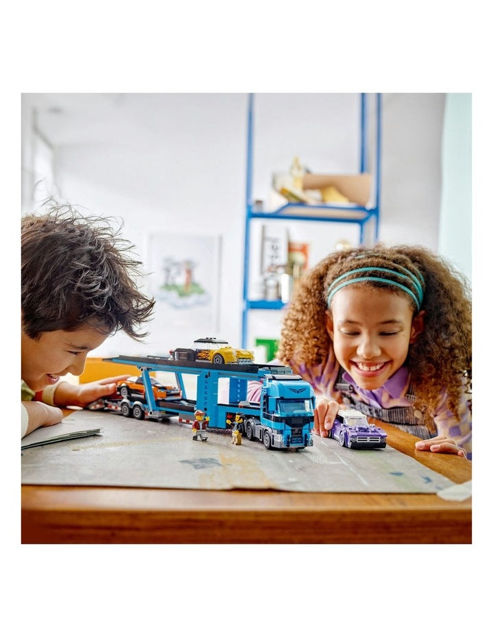 Treat a toy car enthusiast to this multi-vehicle Lego City Car Transporter Truck with Sports Cars (60408) building set for ages 7 and over.