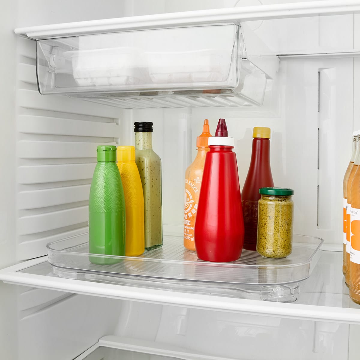 The Clear Rectangular Turntable is a space-efficient storage solution designed to keep fridge or pantry essentials neatly arranged and easy to access. Its practical design allows for smooth rotation, making it simple to reach items at the back without hassle.The rectangular design maximises shelf space, providing an organised way to store bottles, jars, condiments and other kitchen essentials.Designed for use in fridges, pantries, or countertops, this turntable helps keep items visible and within reach while reducing clutter.The secure suction cups provide a stable base, ensuring the turntable stays in place while rotating for convenient access.