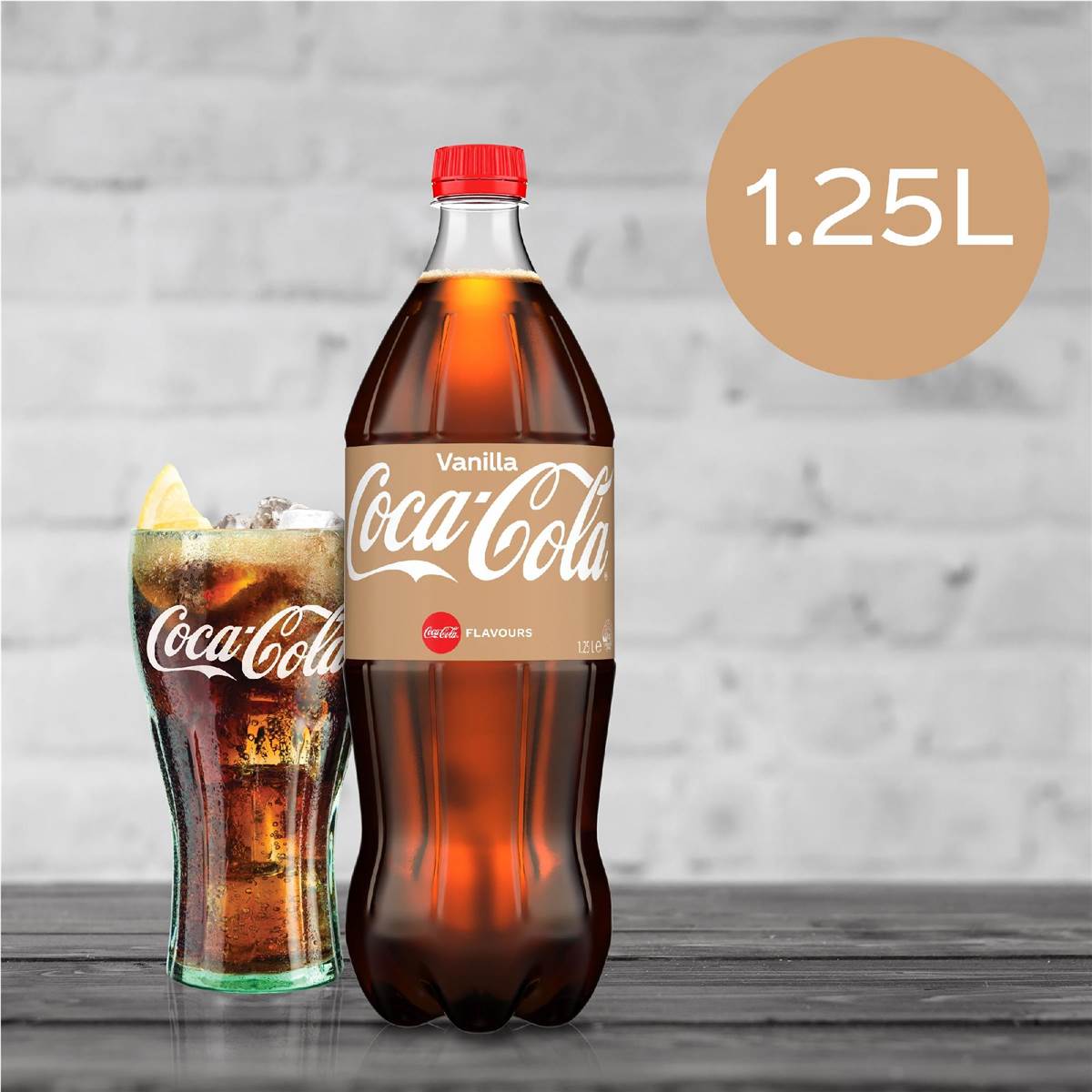 Coca-Cola Vanilla Soft Drink Bottle 1.25LCoca-Cola Vanilla has the refreshing Coca-Cola Classic taste with the sweet aroma of vanilla, making it a delicious twist on an old favourite. Coca-Cola Vanilla soft drink is available in multipack cans, single serve bottles and sharing size bottles. There’s a pack for almost any occasion.Classic Coke Taste with a TwistSweet Hint of VanillaA Quality Product of The Coca-Cola Company1.25L Soft DrinkPerfect for drinking on the go, having with a meal or relaxing with at home.