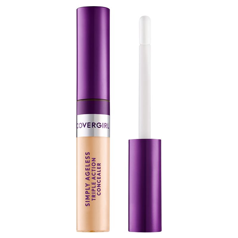 General Information COVERGIRL Simply Ageless Triple Action Face Concealer #310 Light. DEPUFF: Cooling Ceramic Wand for an instant cold effect CONCEAL: Lightweight, medium to full coverage. Radiant finish CARE: Formula, infused with Hyaluronic Complex, Vitamin C & Niacinamide, instantly reduces the appearance of wrinkles & hydrates for a more youthful-looking, wide-awake look. Our most advanced concealer applicator with a Cooling Ceramic Wand that immediately depuffs as it conceals. Cooling Ceramic Wand glides easily without tugging & pulling the sensitive under-eye area. Formula covers dark circles, evens skin tone, and brightens skin to give a well-rested, refreshed-looking eye area. Hydrating formula does not crease and blends seamlessly into skin without settling into lines. Based on a consumer study of 96 women after 1 week of use: 90% say natural-looking finish 97% say feels comfortable all day 93% say feels lightweight 94% say doesn't flake 90% say doesn't tug or pull Size: 7.3mL KEY FEATURES • Infused with Hyaluronic Complex, Vitamin C & Niacinamide • Bright, radiant finish • Medium to full coverage • Formulated for all skin types • Non-Comedogenic/Does not clog pores • Dermatologist Tested • FSC-certified card made from 80% recycled paper • Certified Cruelty-Free International