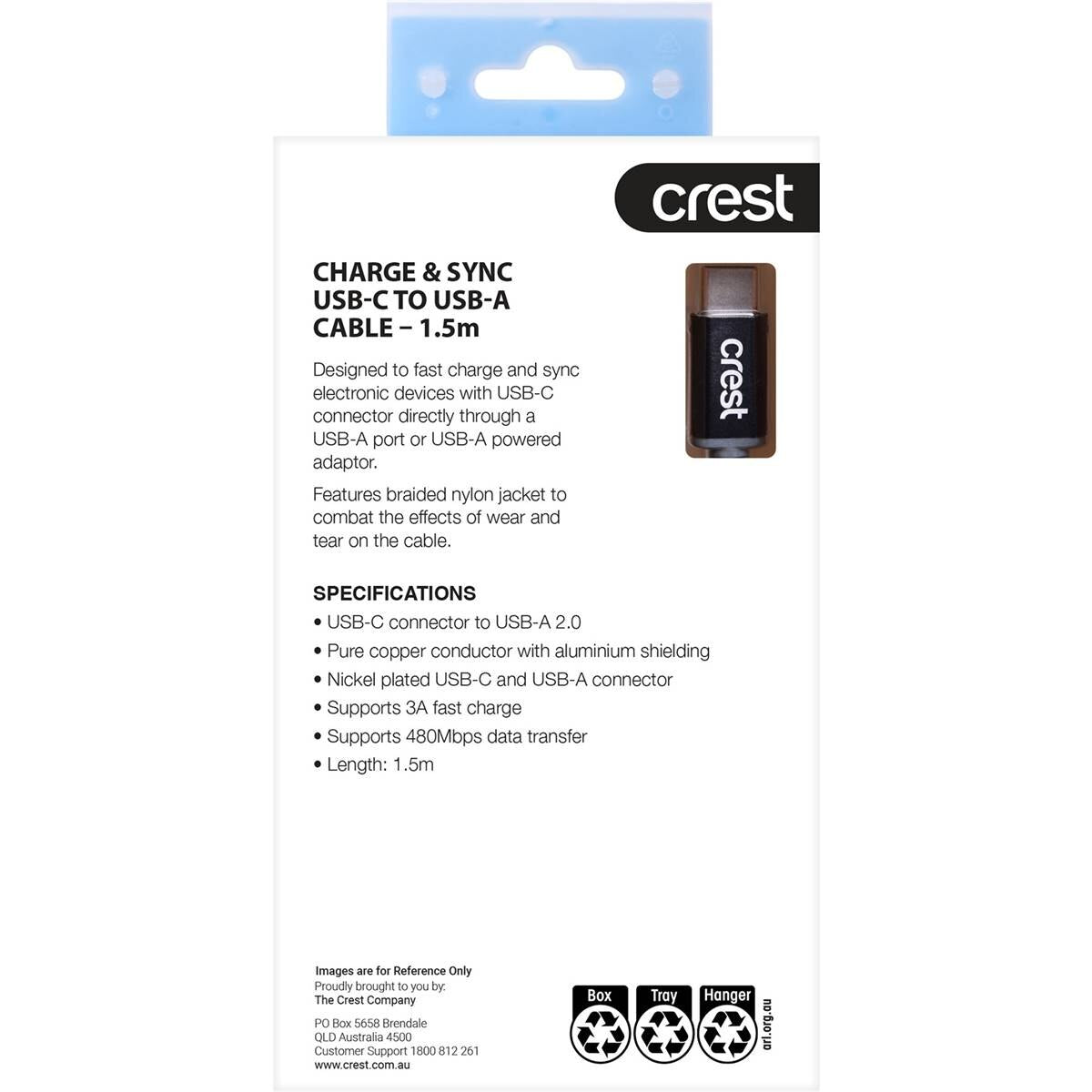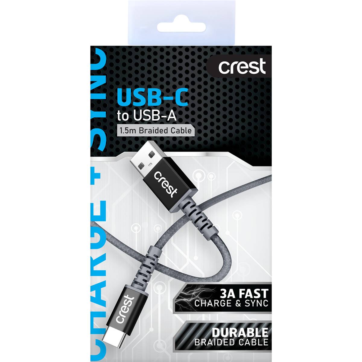Crest USB-C to USB-A Braided Cable 1.5m Assorted each