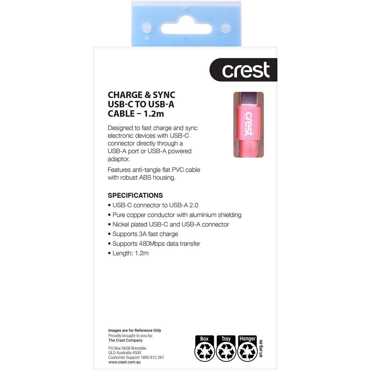 Crest Usb-c To Usb-a Flat Cable 1.2m