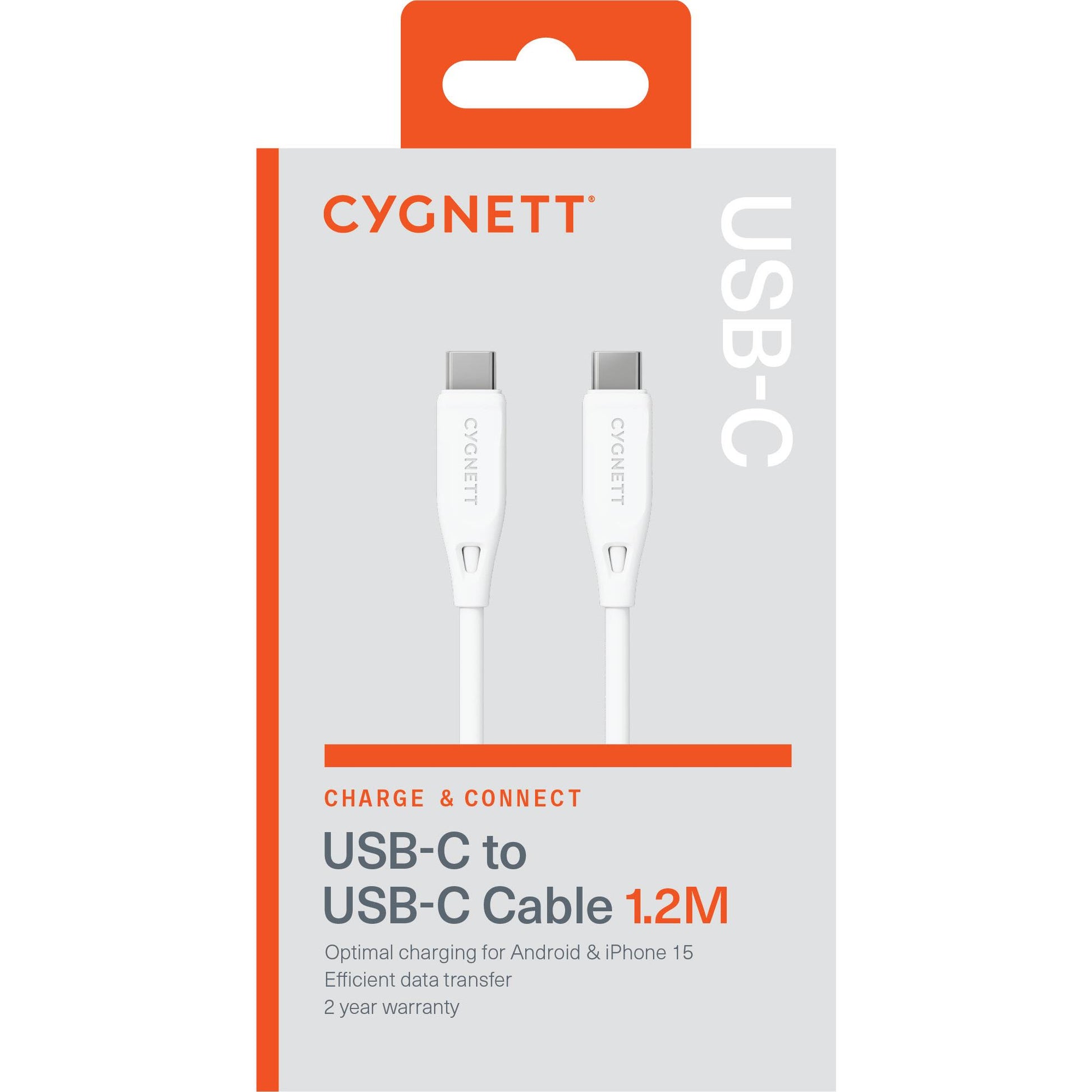 60W fast chargingFear of running out of battery life? The Charge & Connect USB-C 2.0 to USB-C cable supports 3A/60W fast charging, ensuring your USB-C compatible phone or tablet will be powered up in no time. Strain reliefThe flexible strain relief ensures you can use your cable with confidence. This gives added strength and flexibility to the section where the head meets the cable. Transfer files in a flashThe Charge & Connect 2.0 USB-C to USB-C cable allows you to experience up to 480Mbps transfer speeds so you can quickly sync your photos, music, and data to your existing USB-C enabled device Key Features Optimal charging for Android & iPhone 15 Supports up to 60W charging speed Efficient data transfer 2-year warranty Specifications USB: USB 2.0Charging: 60WData: 480Mbps