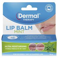 General Information Dermal Therapy Lip Balm Mint is a concentrated formula containing a synergistic blend of ingredients designed to soften and hydrate severely dry lips, keeping them smooth and healthy. It is enhanced with a fresh mint flavour that brings a cooling and refreshing feeling to the lips. Dermal Therapy Lip Balm Mint flavour is a concentrated formula specially designed to hydrate and soften severely dry lips. Ultra moisturising Visible results in 1 day Australian made & owned Suitable For: Suitable for adults and children over 3 years of age. Product Claims: Visible Results in 1 Day Size: 10g KEY FEATURES • ULTRA MOISTURISING • VISIBLE RESULTS IN 1 DAY • FOR SEVERELY DRY & CHAPPED LIPS • ALLEVIATES SEVERE DRYNESS & DISCOMFORT • CLINICALLY TESTED - FAST ACTING • INTENSIVE HYDRATION • FOR SEVERELY DRY & CHAPPED LIPS • EASY TO USE APPLICATOR