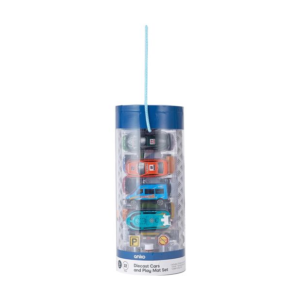 Product DetailsSuitable for ages: 3+ yearsIncludes 13 x diecast vehicles, 1 x boat, 7 x accessories and 1 x paper play matDimensions/Size:Orange car: 7cm (L) x 3cm (W) x 2.4cm (H)Light blue car: 7.2cm (L) x 2.7cm (W) x 3.5cm (H)Red car: 7.1cm (L) x 3.1cm (W) x 2cm (H)Purple car: 7.1cm (L) x 3.1cm (W) x 1.9cm (H)Dark blue car: 7.1cm (L) x 3.2cm (W) x 1.9cm (H)Yellow car: 7.1cm (L) x 2.9cm (W) x 2.6cm (H)Jeep: 7.5cm (L) x 4cm (W) x 4cm (H)Blue car: 7.3cm (L) x 1cm (W) x 2.5cm (H)Green car: 7.1cm (L) x 3cm (W) x 2.2cm (H)Hovercraft: 7.3cm (L) x 3.5cm (W) x 2.8cm (H)White car: 7.1cm (L) x 3cm (W) x 2.1cm (H)White ambulance: 7.1cm (L) x 3.4cm (W) x 2.2cm (H)Forklift: 7.3cm (L) x 2.5cm (W) x 4.3cm (H)Shovelcar: 7.7cm (L) x 3.6cm (W) x 2.7cm (H)Roadblock: 2.3cm (L) x 2.3cm (W) x 2.3cm (H) Oil drum: 2.4cm (L) x 1.6cm (W) x 1.6cm (H)Warning sign: 2.5cm (L) x 2.8cm (W) Guideboard: 4.6cm (L) x 1.5cm (W)Map: 77.5cm (L) x 52cm (W)Material:Vehicles: Acrylonitrile butadiene styrene (ABS) and metalRoadbloack, oil drum, warning sign and guideboard: Acrylonitrile butadiene styrene (ABS)Map: PaperFeatures22 piecesAdditional Information Warning: Choking Hazard. Small parts. Follow usage instructions carefully.