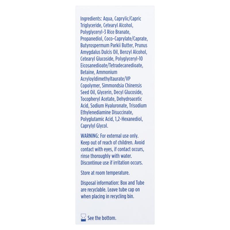 Ingredients Aqua, Caprylic/ Capric Triglyceride, Cetearyl Alcohol, Polyglyceryl-3 Rice Branate, Propanediol, Coco-Caprylate/ Caprate, Butyrospermum Parkii Butter, Prunus Amygdalus Dulcis Oil, Benzyl Alcohol, Cetearyl Glucoside, Polyglyceryl-10 Eicosanedioate/ Tetradecanedioate, Betaine, Ammonium Acryloyldimethyltaurate/ VP Copolymer, Simmondsia Chinensis Seed Oil, Glycerin, Decyl Glucoside, Tocopheryl Acetate, Dehydroacetic Acid, Sodium Hyaluronate, Trisodium Ethylenediamine Disuccinate, Polyglutamic Acid, 1,2-Hexanediol, Caprylyl Glycol.