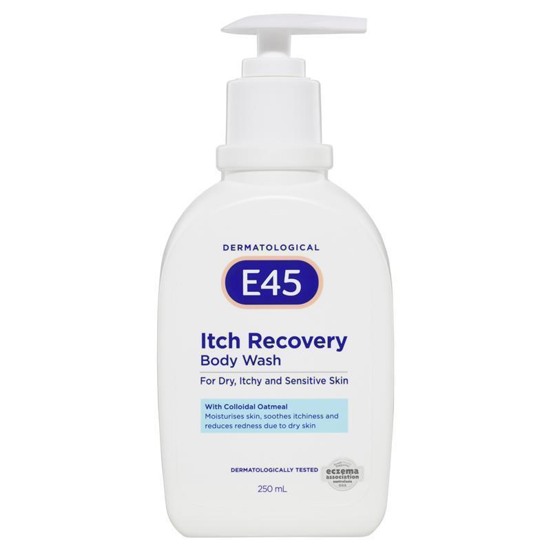 General Information E45 Itch Recovery Moisturising Body Wash helps to calm the skin,soothe itchiness and reduce redness due to dry skin. E45 Itch Recovery Moisturising Body Wash is formulated for dry, itchy and sensitive skin. A nourishing formula containing colloidal oatmeal known to calm the skin, soothe itchiness and reduce redness due to dry skin. Dermatologically tested, pH balanced, mild formulation that is made in Australia. Available in lotion and wash. Size: 250mL Dermatologist Tested?: Yes KEY FEATURES • Dermatologically tested on normal and sensitive skin • pH balanced • Made in Australia • Mild formulation with no added soap, colourant, fragrance, MIT, parabens, lanolin, animal derived ingredients, mineral oil, SLS,SLES