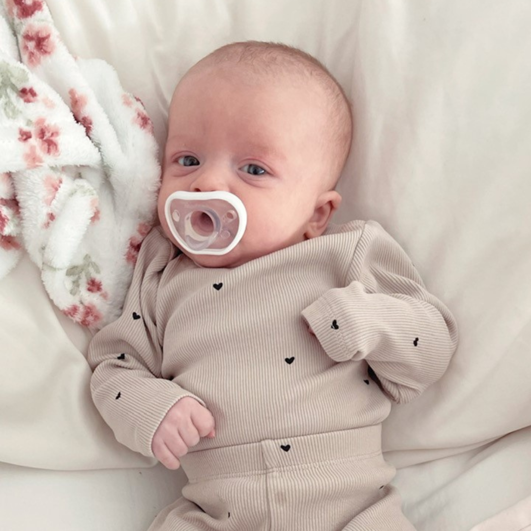 Nanobébé’s Flexy Pacifier will calm and soothe your newborn from their very first day. Flexy pacifiers are made from safe BPA-free silicone. This pacifier is both durable and extra soft – and thanks to its lightweight and ergonomic design; it will easily stay in your baby’s tiny mouth. The one-piece silicone construction meets the standards of the American Academy of Paediatrics Guidelines, and its unique teat shape promotes healthy oral development and discourages nipple confusion when breastfeeding. Choose from five distinctive frame colours. FEATURES: • Extra-soft silicone teat for baby’s comfort • Lightweight, ergonomic design helps to keep the pacifier in baby’s mouth• One-piece silicone construction adheres to the American Academy of Paediatrics’ guidelines for newborns • Unique teat promotes healthy oral development• Different sizes available to match your baby's development • Premium materials - Nanobébé products are BPA, PVC, LEAD and PHTHALATE Free What’s in the box:2 x nanobebe Flexy Pacifiers