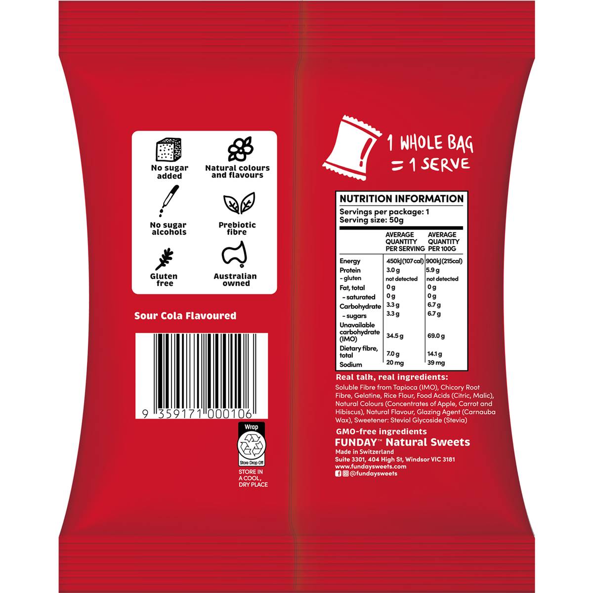 Funday Natural Sweets Sour Cola Flavoured Bottles 50g