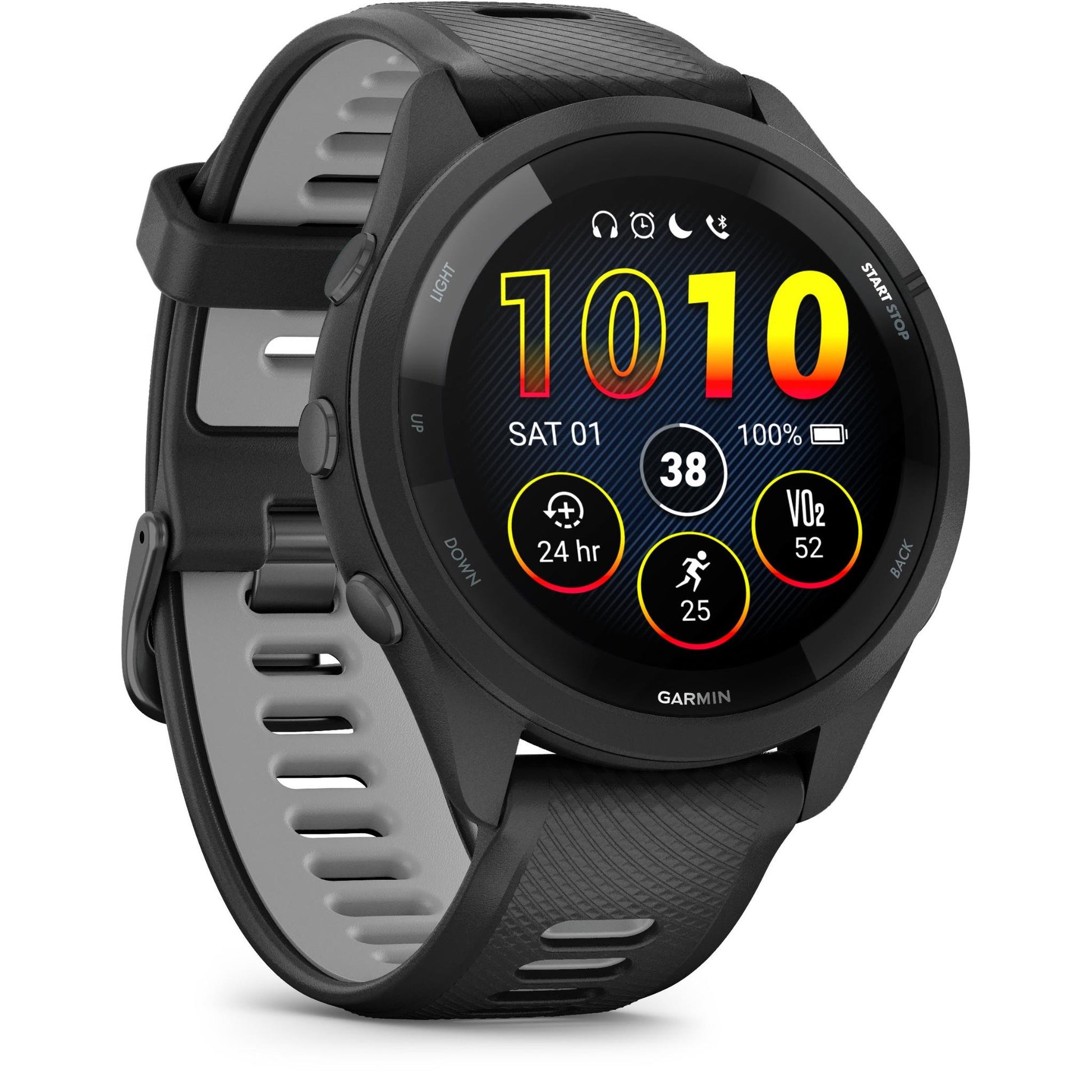 Train brilliantly with the Forerunner® 265 GPS running smartwatch. Its colorful AMOLED touchscreen display stands out while the training readiness feature — which tells you when you’re primed for a productive session — helps you crush your goals. Wake up to your morning report with HRV status to see health insights alongside an overview of sleep, recovery and training outlook (data presented is intended to be a close estimation of metrics tracked). Plan your race strategy with the race widget, which enables personalized daily suggested workouts that adapt to performance, recovery, the race you’re running and its course. Get ready to make the most of every run with wrist-based running power and multi-band GPS. And when you want to switch it up with cross training, choose from more than 30 activity profiles, including triathlons, cycling, swimming and more. Get a more complete picture of your health, not just a glimpse, from your Forerunner 265 with up to 13 days of battery life in smartwatch mode.