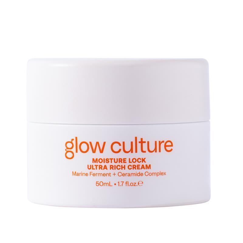 General Information GIVE YOUR SKIN THE DEEP, LONG-LASTING HYDRATION IT CRAVES! Say goodbye to dry patches and hello to a moisture-locking must-have! Hydrate • Replenish • Protect This luxuriously rich balmy-like, multi-benefit cream is fast absorbing, leaves no oily residue and can be used day and night. It is supercharged with 11 fermented ingredients and other powerful actives to give continuous long-lasting hydration. It helps calm & soothe irritated skin, improve skin elasticity, strengthen the skin barrier, and gives you visibly softer, smoother, glowing skin. Formulated with a powerful combination of Marine Ferment, Fermented Ashwagandha, Ceramide Complex, Fermented Soybean, Japanese Bloodgrass & Mistletoe, Fermented Olive Oil and our unique Bio-Fermented Blend. Marine Ferment is clinically proven to protect skin from oxidative stress, deliver long lasting hydration and improve skin texture and rugosity in just 7 days^. Fermented Soybean, Japanese Bloodgrass & Mistletoe is proven to be 7X^ more hydrating than standard Hyaluronic Acid. Fermented Ashwagandha is a powerful adaptogen that slows premature ageing and helps keep skin calm, soft and supple. While the Ceramide Complex, Fermented Olive Oil and our Bio-Fermented Blend work synergistically to help strengthen and boost the skin barrier. Ultra-rich moisturiser that melts into your skin, leaving it soft, smooth, feeling nourished and looking glowy!! *90% of users said their skin felt instantly replenished and super moisturised. * Based on an independent study conducted on 42 participants for 4 weeks. Skincare benefits increase over time with consistent use. ^ Based on manufacturer ingredient study. Dermatologist-tested. Vegan. Sensitive-skin friendly. Made in Australia WHY YOU NEED IT? After 1 Week: * 90% of users said their skin felt instantly replenished & super moisturised * 88% of users said their skin looked smoother & felt significantly softer & supple After 4 Weeks: * 83% of users said their skin felt continuously hydrated all day * 81% of users noticed an improvement in skin elasticity * 81% of users said their skin looks even healthier * 81% of users said their skin looks and feels calm * Based on an independent study conducted on 42 participants for 4 weeks. Skincare benefits increase over time with consistent use. HERE’S THE GLOWDOWN MARINE FERMENT Delivers short and long-lasting hydration. It is proven to give 85% less rugosity in 28 days^ and reduce appearance of wrinkles by up to 62% less in volume and 44% less in crow’s feet in 7 days^, leaving your skin soft and smooth. CERAMIDE COMPLEX A potent, skin-identical lipid concentrate-mix of ceramides, cholesterol, free fatty acid and phytosphingosine, that helps strengthen & restore the skin barrier function within 20 hours^ and helps enhance skin moisturisation and protection. FERMENTED ASHWAGANDHA A powerful adaptogenic plant extract that protects the skin from oxidative stress-induced damage like premature aging and dehydration, keeping skin calm, soft, and supple. FERMENTED SOYBEAN, JAPANESE BLOODGRASS & MISTLETOE Concentrated complex that acts as a powerful antioxidant and moisturising agent to soothe & calm skin and proven to be 7X more hydrating than standard Hyaluronic Acid^. BIO-FERMENTED BLEND Supercharged by powerful fermented ingredients (that are also pre & postbiotics) and an innovative bio-tech active that in combination, support, nourish, and protect the skin barrier while helping to revive skin radiance. FERMENTED OLIVE OIL Content of the Free Fatty Acids (including Essential Fatty Acids) in the fermented olive oil can be more than 10X^ richer than in the unfermented oil. These Acids help support a stronger skin barrier, improve hydration, and contribute to a more supple and resilient complexion. NIACINAMIDE A powerful vitamin proven to visibly improve uneven skin tone, skin elasticity, dullness, and promote smoother, brighter, youthful-looking skin. ^ Based on manufacturer ingredient study Suitable For: For dry skin, dehydrated skin, rough & reactive skin. For all skin types including sensitive skin. Boxed Contents: Glow Culture Moisture Lock Ultra Rich Cream Size: 50ml Skin Condition: Rough Skin| Dry Skin KEY FEATURES • Skin feels consistently hydrated • Skin looks smoother • Skin feels soft and supple