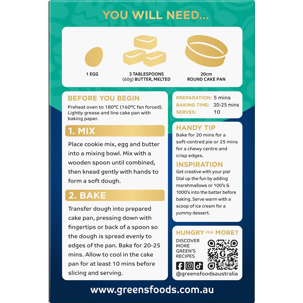Green's Deluxe Choc Chip Cookie Pie Mix 400g