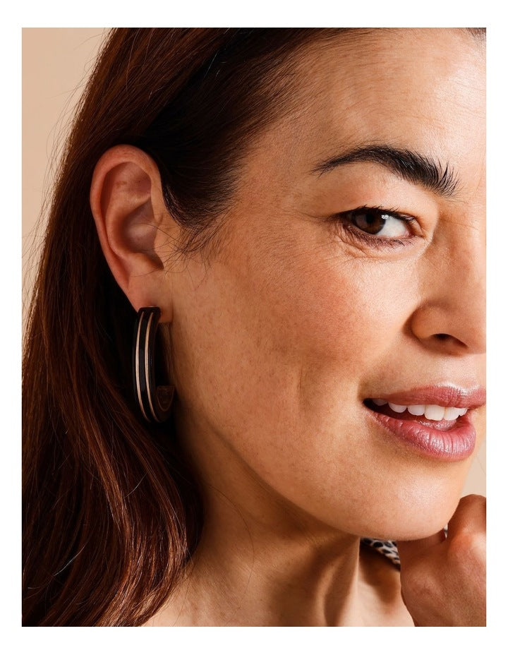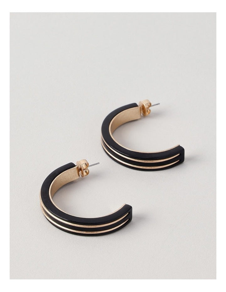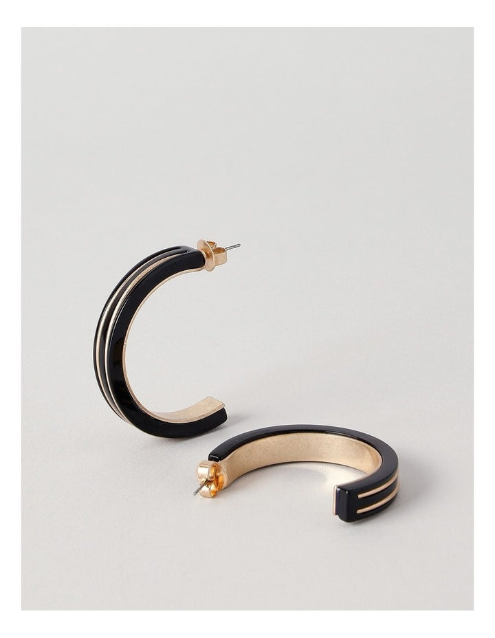 This earring features a modern, open-hoop design crafted from metal with a solid black finish. Its distinct C-shape silhouette is designed to curve along the earlobe, offering a minimalist and contemporary interpretation of the classic hoop style. The understated yet structural form makes it a versatile accessory suitable for a range of looks.