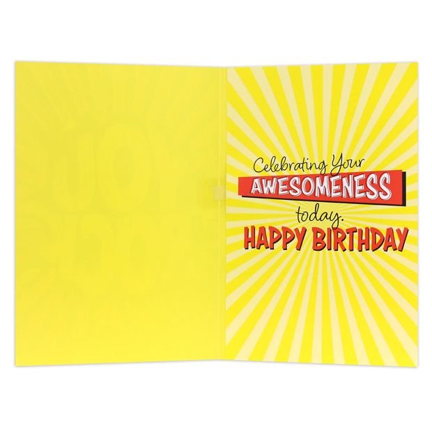 Product DetailsIncludes one card and one coordinating white envelope Dimensions/Size: 20.2cm (L) x 13.8cm (W) FeaturesThe front of the card features the message 'You Rock'When opened, the inside of the card plays rock music and features the message 'Celebrating your awesomeness today. Happy Birthday'Care for your planet. This product is made of material from well-managed, FSC-certified forests and other controlled sources