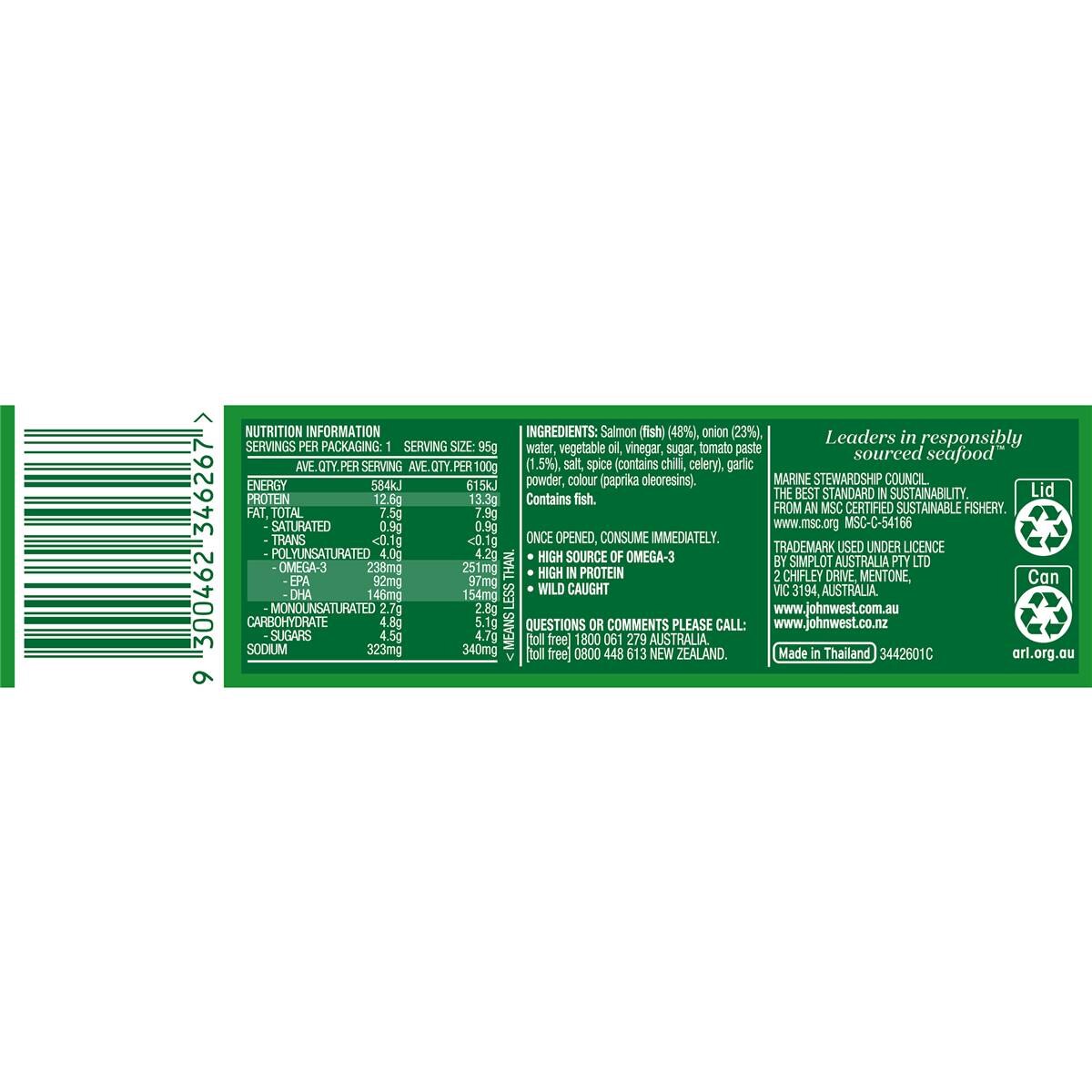Wild caught, skinless and boneless pink salmon so easy to add to your favourite snacks and appetisers. Try using John West Salmon Tempter Onion and Tomato in wraps and sandwiches or as a topping for tiny canapes.