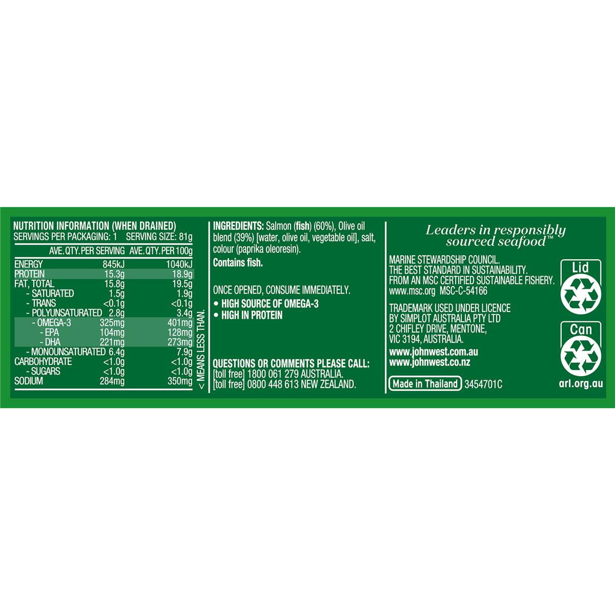 Wild-caught, skinless and boneless pink salmon infused with Olive Oil for a refreshingly delicious taste. Packed with high-quality protein and omega-3 fatty acids, this all-natural delight is the perfect guilt-free indulgence. Whether enjoyed as a convenient snack or incorporated into your favorite recipes, John West Salmon with Olive Oil is a versatile and nutritious choice for any mealtime.