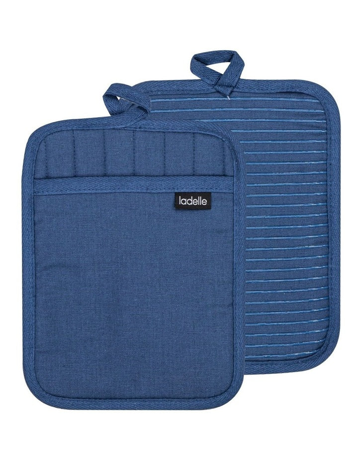 Made from cotton, the lennox pot holders are available in 3 colours, gum, stone and marine blue. Each pot holder features silicon stripes for firm grip. Other kitchen accessories in the range are also available.