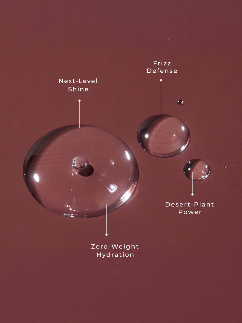 Superfruit Complex: A luxe blend of coconut MCTs, amaranthus squalane, and açaí delivers mirror-like shine without the greasy aftermath.. Coconut Alkanes: Lightweight ingredients derived from coconut oil give you all the silicone benefits (slip, shine, smoothness) with none of the heavy residue.. Super Grains: Chickpea, lentil, and quinoa peptides help seal the cuticle for that signature smooth style.. Chia Seed Extract: Smooths split ends and strengthens strands to help stop damage in its tracks.