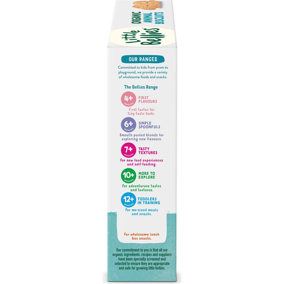 Little Bellies Organic Animal Biscuits are delightful wholegrain animal-shaped biscuits, to make grumbly tummies happy. We've used nothing but organic grape juice concentrate to give just a touch of sweetness and make our biscuits perfectly crispy and crunchy - just as biscuits should be. Baked with 31% wholegrain.Our TODDLERS IN TRAINING range for 12+ months includes snacks and meals with more adventurous textures, shapes and flavours to encourage a positive transition to toddlerhood.Do what's natural! WE DO WHAT'S NATURAL...Make simple, wholesome age-and-stage appropriate baby, toddler and kids foods.SO YOU CAN DO WHAT'S NATURAL...Nurture, support and raise independent and unique little people.SO THEY CAN DO WHAT'S NATURAL...Happily grow, develop and play through every major milestone.