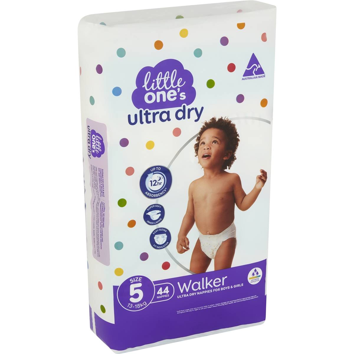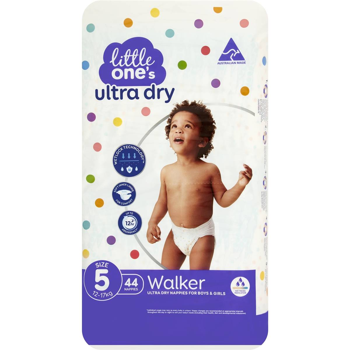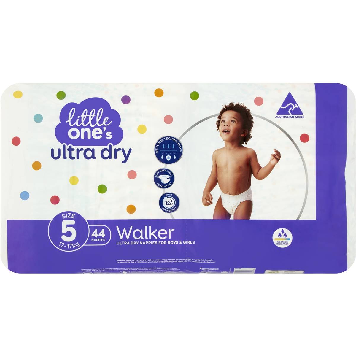 Little One's Size 5 Ultra Dry Nappies Walker 13-18kg Boys & Girls 44 Pack
