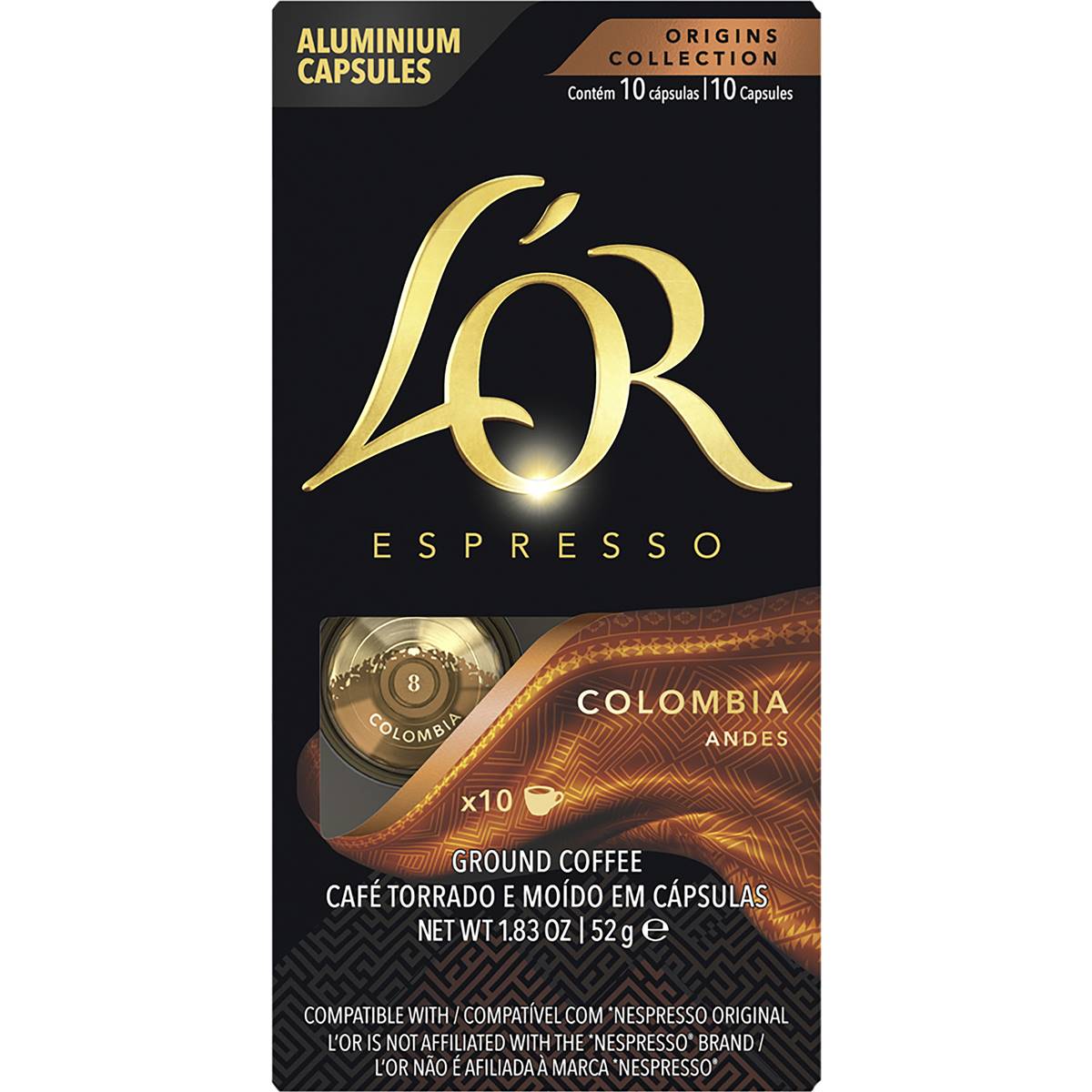L'OR Espresso Colombia Intensity 8 is a smooth, sweet and fruity ground coffee in capsules that is compatible with Nespresso* original coffee machines.A smooth and sweet blend that is as warm and welcoming as lush Colombia. Citrus fruit notes give way to complexity at the core and an elegant aftertaste.Blended by L’OR Coffee Artists.Smooth, sweet and fruity ground coffee in single-dose capsulesIdeal preparation is espresso (40mL)Compatible with L’OR Barista and Nespresso* original coffee machinesResponsibly sourced coffee blend100% recyclable capsules via partnership with Terracycle