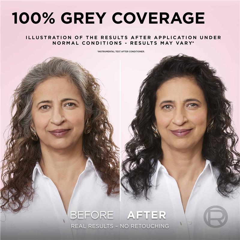 General Information Experience visibly better hair quality than before colouring with Excellence Crème by L'Oréal Paris, now enriched with Hyaluronic Acid. 100% Grey Coverage. Experience visibly better hair quality than before colouring* with Excellence Creme by L'Oréal Paris, now enriched with hyaluronic acid. Our kit provides 100% grey coverage, giving your hair up to 10x more moisture* and 2x richer colour**. The application is easy thanks to our non-drip crème formula, suitable for all hair types. Our Triple Care Colour ritual cares for your colour, cares for your scalp and cares for your hair. The protective colouring cream is enriched with Pro-Keratin for long lasting colour. The gentle scalp post-colour shampoo delicately cleanses the scalp and hair by gently rinsing away excess residue. Formulated specifically to be used right after colouring your hair. Complete the routine with the caring lightweight mask which is infused with conditioning ingredients, our mask intensively nourishes the hair without weighing it down. *instrumental test after use of the whole kit *instrumental test How To Use: 1) Add the L'Oréal Paris Excellence Crème colouring cream to the developer and shake well to mix. 2) Apply the mix to your hair, starting from the roots then throughout the lengths and ends. Leave in hair for 30 mins. 3) Rinse your hair until the water runs clear. Use the Caring Gentle pH Shampoo to remove any excess residue. 4) Apply a hazelnut amount of the Lightweight Nourishing Mask. Leave in for 3 mins then rinse your hair. Use the mask once a week until your next colour for soft, shiny, lively hair. IMPORTANT - The colour of the mix looks different than before, but hair colour results remains the same as long as it is not rinsed before the 30-minute processing time. Size: 1 Unit Fragrance: N/A KEY FEATURES • Includes our triple care colour ritual, 1. Caring colouring cream, 2. Caring gentle scalp post-colour shampoo, 3. Caring lightweight mask • 100% Grey Coverage • New Post Colour Shampoo is gentle on scalp & hair • Nourished, healthy hair • Natural, multi-tonal colour