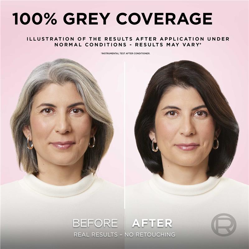 General Information Colour with respect with new L'Oréal Paris Excellence Crème. 100% Grey Coverage Colour with Respect. Respect as you Colour. Respect your Scalp. Respect your Hair. 100% grey coverage from root to tip. L'Oreal Paris Excellence Crème gives you a rich, deep, natural and even colour available in a wide spectrum of shades. Our reformulated 3 step system ensures your hair will be left with impeccable grey cover, superior strength and replenished like never before. The protective colouring cream is enriched with Pro-Keratin for long lasting colour and strengthens hair. The new caring post-colour shampoo delicately cleanses the scalp and balances your scalp pH level for less irritation. Complete yout routine with the new lightweight nourishing mask for shiny, soft and lively hair. Size: 1 Unit Fragrance: N/A KEY FEATURES • Includes our triple care colour ritual, 1. Caring colouring cream, 2. Caring gentle scalp post-colour shampoo, 3. Caring lightweight mask • 100% Grey Coverage • New Post Colour Shampoo is gentle on scalp & hair • Nourished, healthy hair • Natural, multi-tonal colour