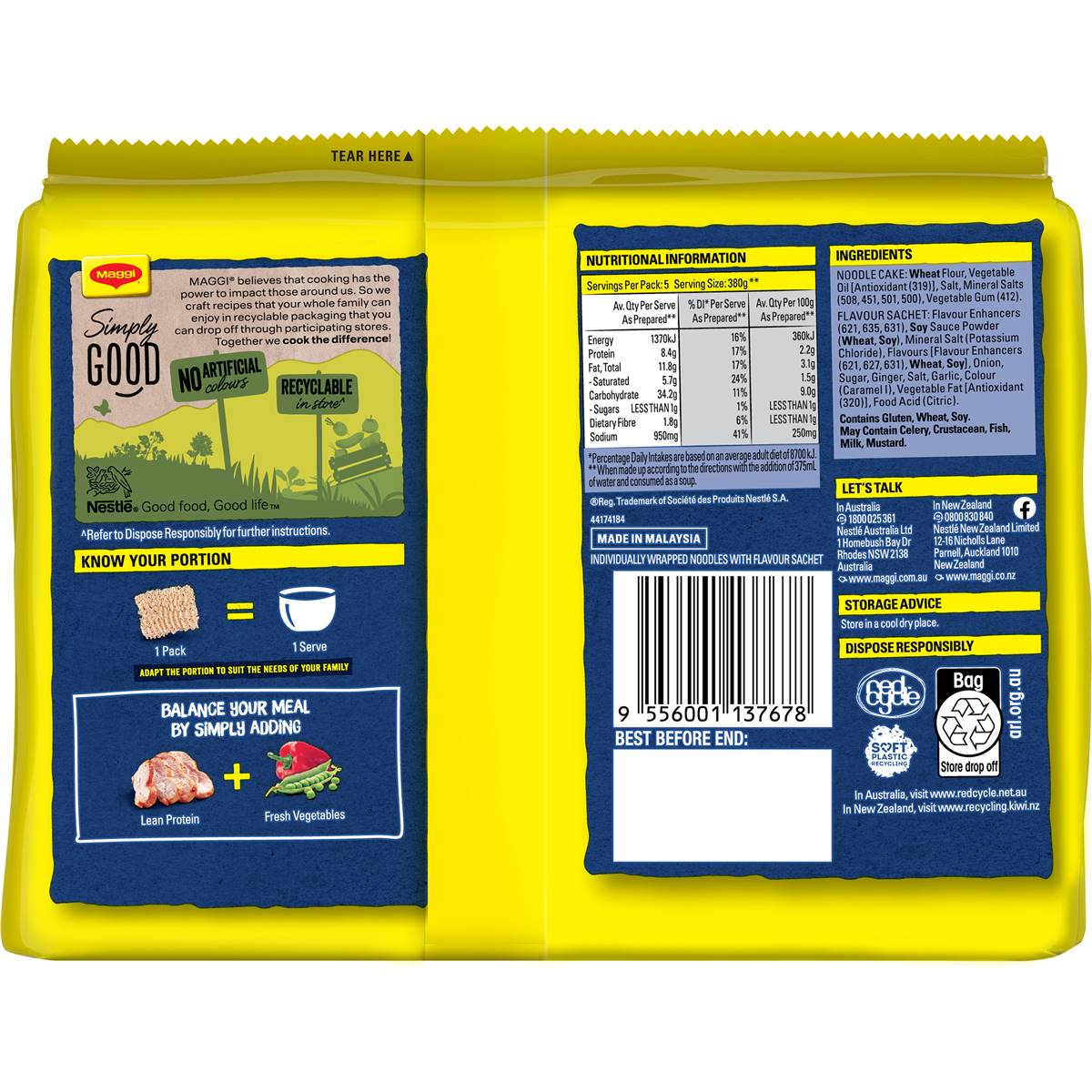 MAGGI 2-MINN ORIENTAL MP 5X74GMAGGI 2 Minute Noodles Oriental Flavour are a staple in any pantry. Full of flavour, these instant noodles are great as a fun and tasty snack, or a quick and easy meal! Enjoy your oreintal flavoured noodles with or without broth as desired.To boost the goodness in your bowl, simply add lean protein such as cooked chicken, beef or prawns, and plenty of fresh vegetables to your noodles. Adapt the portion to suit the needs of your family.