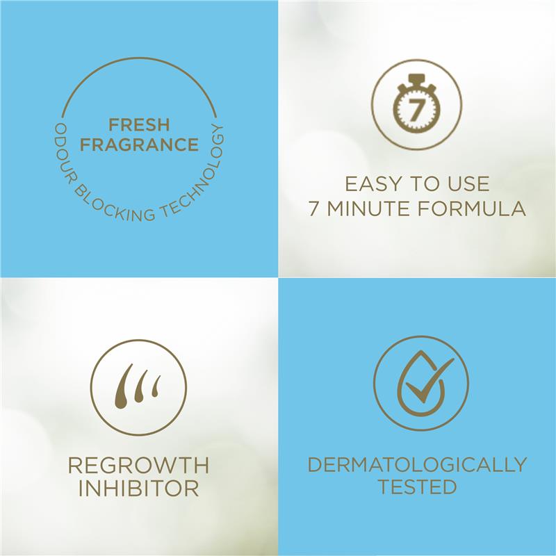 Warnings Avoid contact with eyes / Keep out of reach of children / Contain Potassium Thioglycolate / READ BEFORE USE: Test 24 hours before every use, on the area to be treated. Discontinue if reaction occurs within 24 hours. DO NOT use on broken skin, including recently shaved areas, scars, irritated or inflamed skin, or if history of eczema or dermatitis. DO NOT use if on any medication which affects the skin. DO NOT use immediately before or after washing. Avoid applying deodorant, soap or perfume to area for 24 hours. Rinse hands thoroughly after applying lotion. Should the product directly or indirectly touch the eyes, ears, lips, nipples, perineal or vaginal / genital areas, injury could result. Rinse immediately with cool water. If irritation appears stop use immediately and seek medical advice. PRECAUTIONS Always do a patch test on the area you want to treat, 24 hours before treatment, even if you have used this product before. If there is no adverse reaction after 24 hours, continue with the full treatment.