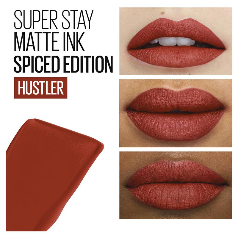 General Information Now, ink with attitude in our spiced-up heated liquid matte lipstick shades. This intense pigment formula lasts for up to 16 hours. SuperStay Matte Ink™ Liquid Lipstick is a new range of intense shades for those who have that unapologetic spice for life. Now you can ink with attitude in these spiced-up matte lipstick shades for up to 16 hours. Size: 5ml Fragrance: - KEY FEATURES • Limited Edition. • Ink with attitude in spiced reds for up to 16 hours. • Features a unique arrow applicator for a more precise liquid lipstick application