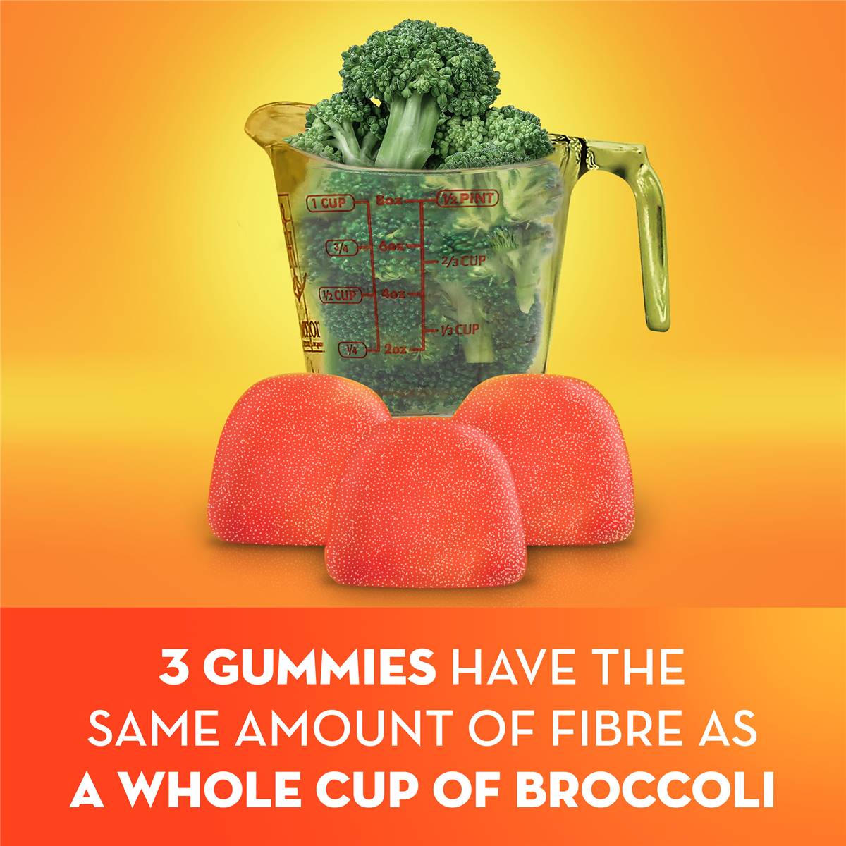 Metamucil Fibre Gummies are a prebiotic plant-based fibre blend that supports digestive health. With less than 0.5g of sugar per gummy, they are a delicious and convenient way to supplement your daily fibre intake! Take 3 Gummies per serve which is equivalent to a whole cup of broccoli! Metamucil Fibre Gummies are a prebiotic plant-based fibre blend that supports digestive health. With less than 0.5g of sugar per gummy, they are a delicious and convenient way to supplement your daily fibre intake! Take 3 Gummies per serve which is equivalent to a whole cup of broccoli!Prebiotic plant-based fibre blend3 gummies = 1 more fibre than a whole cup of broccoliLess than 0.5g of sugar per gummyDelicious and convenient way to supplement fibre intakeSupports digestive healthGelatin-freeDelicious orange flavour