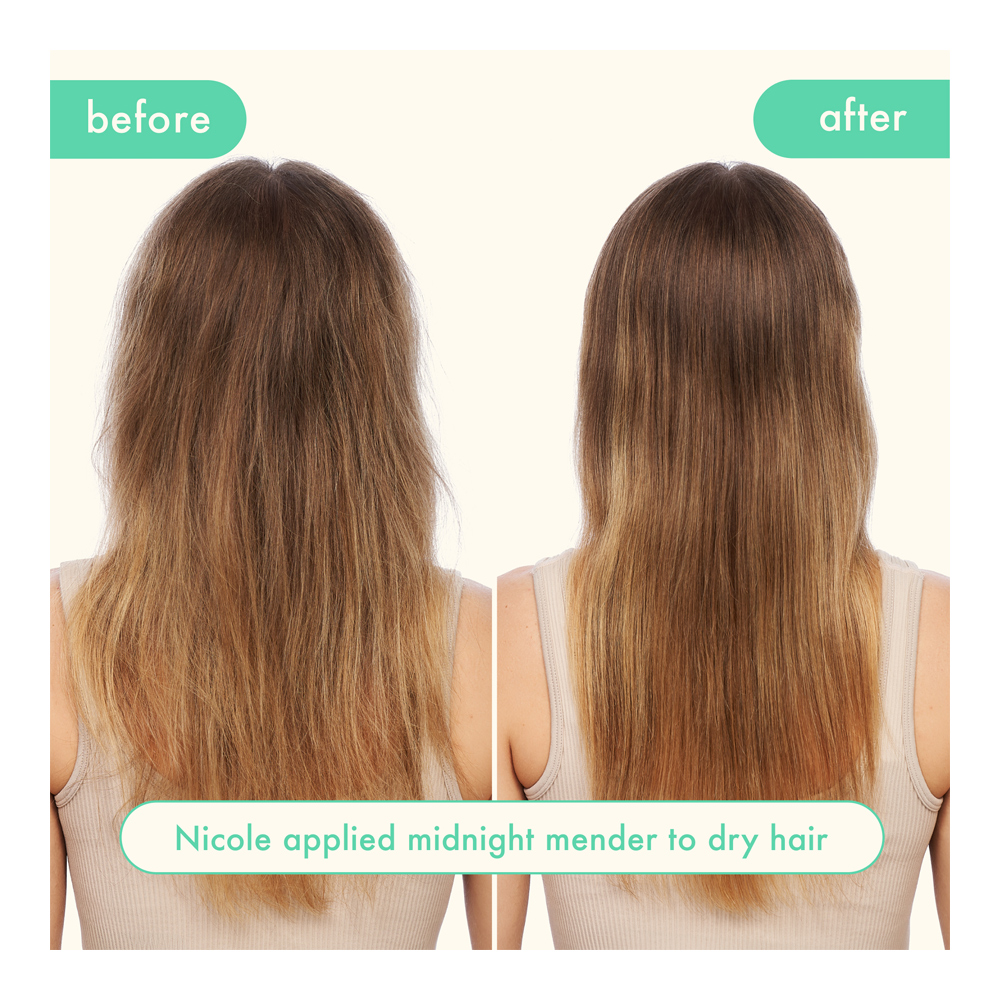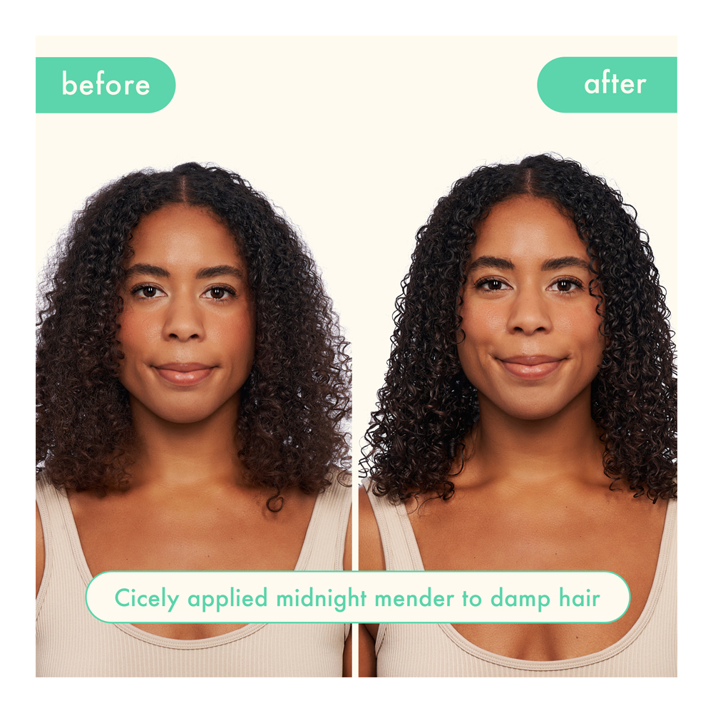 1. Apply this leave-in, overnight treatment on damp or dry hair before bed once a week—or as often as you’d like, even daily!