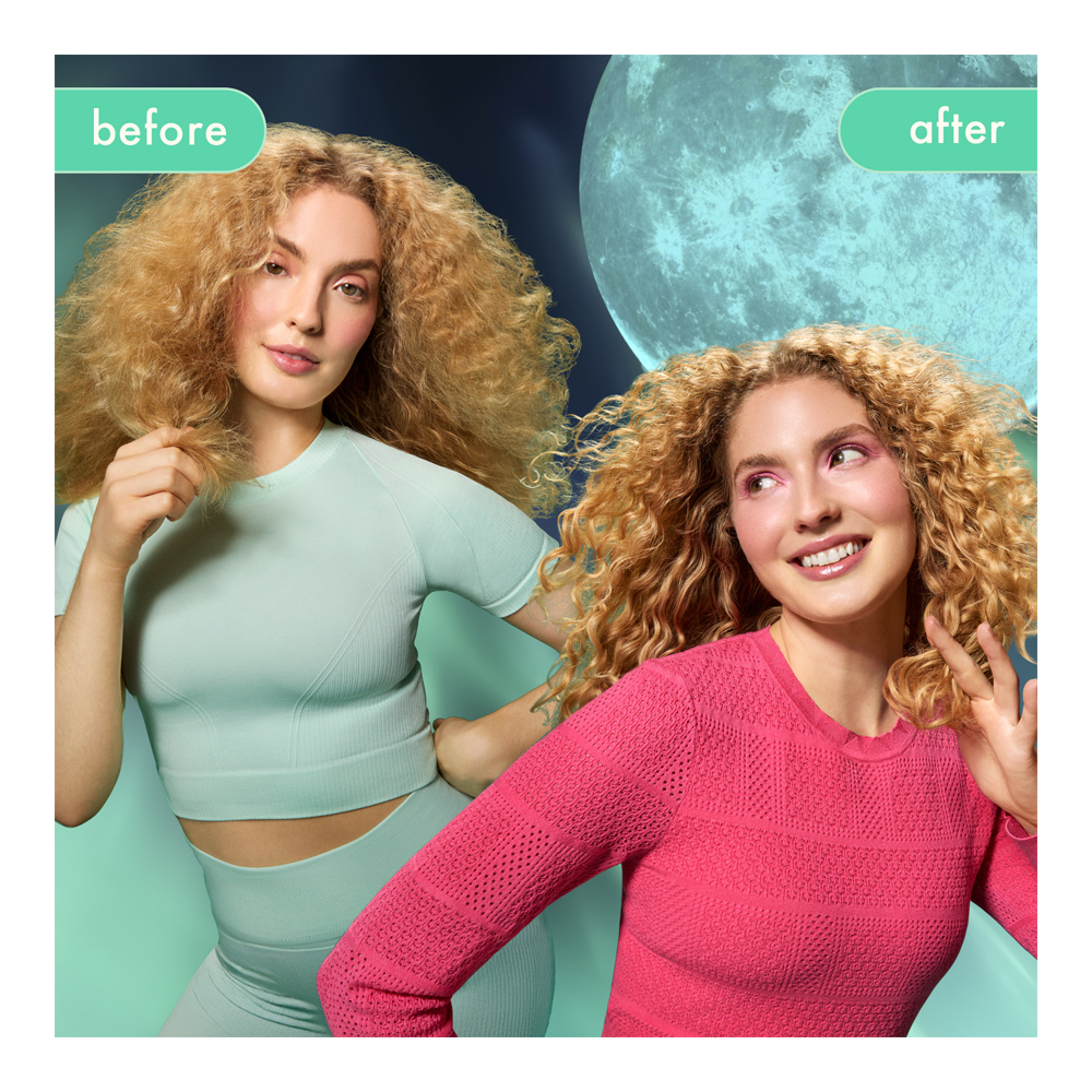 2. Spread a pump into hands and distribute from mid-lengths to ends, lightly coating the hair (without changing your style!). Use more if needed.