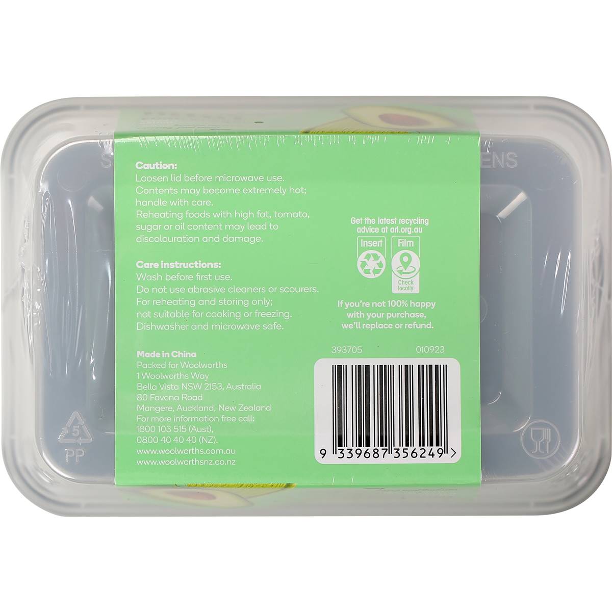 Ideal for keeping the fridge tidy and carrying food easily. Caution: Loosen lid before microwave use. Contents may become extremely hot; handle with care. Reheating foods with high fat, tomato, sugar or oil content may lead to discolouration and damage. Care instructions: Wash before first use. Do not use abrasive cleaners or scourers. For reheating and storing only; not suitable for cooking or freezing. Dishwasher and microwave safe.